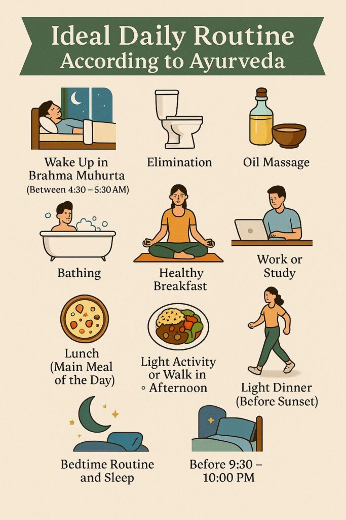 Ayurveda, the ancient science of life and holistic healing from India, emphasizes not only curing diseases but also maintaining balance in body, mind, and spirit. One of its most powerful lifestyle recommendations is the concept of “Dinacharya” — the ideal daily routine.